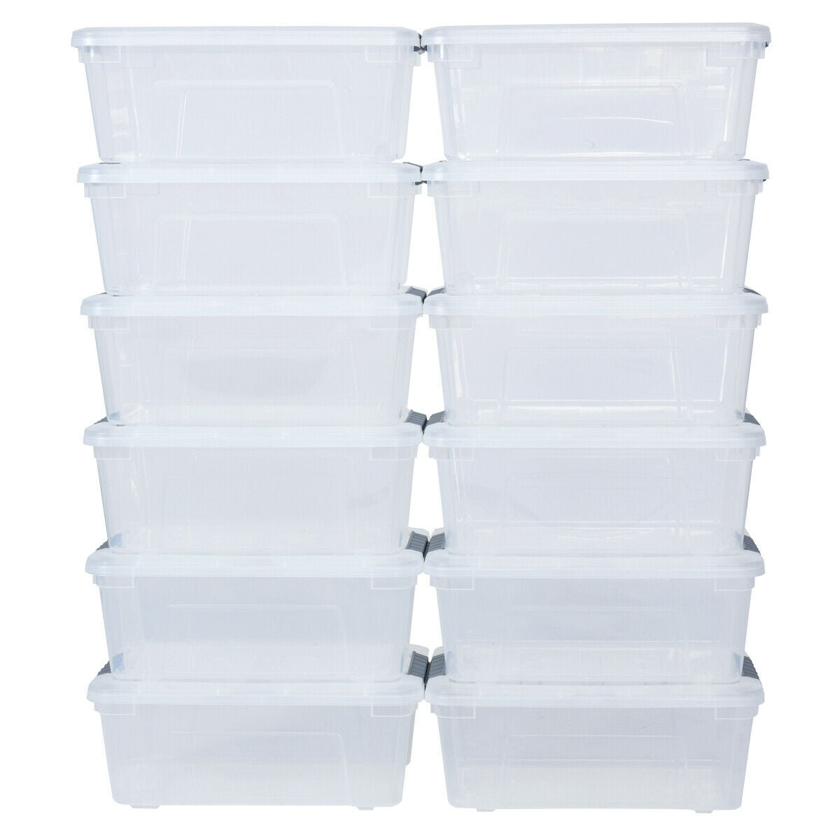 12 Plastic, 12L, Stackable, Storage Boxes with Lids