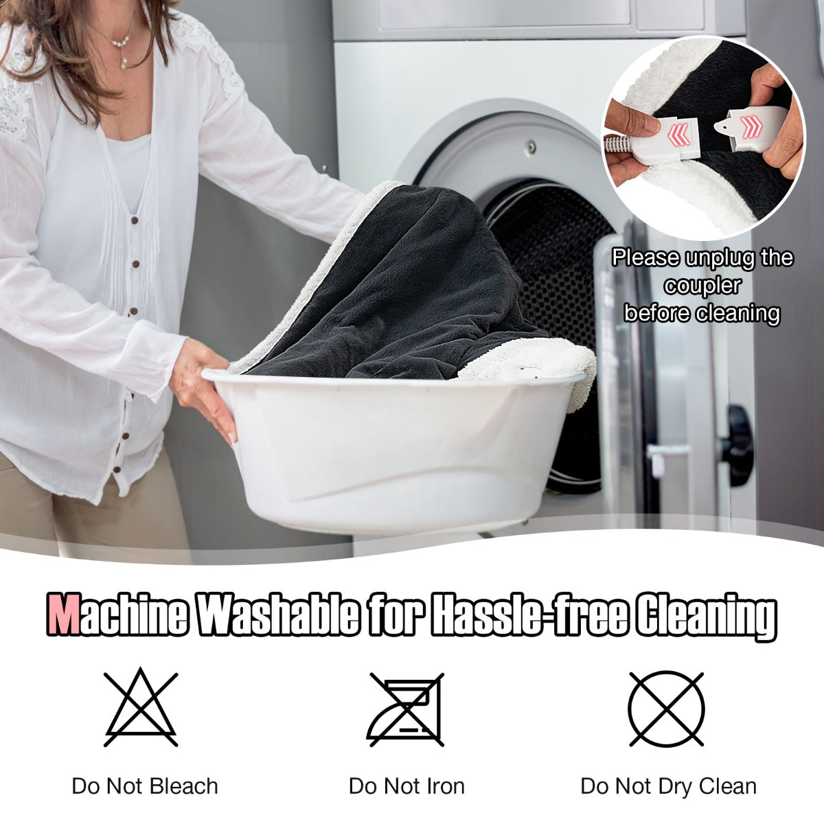 Enjoy incredible warm and cosy winter with the electric heated blanket throw! The electric heating blanket has a smart controller with LED screen, you can easily adjust the temperature of 10 levels and the timing of 9 levels to meet the needs of different people and save power. Adopting faux rabbit velvet and sherpa fleece, the soft touch of the heated blanket will ensure a very comfortable experience in various scenarios, such as bed, couch, or sofa. Therefore, it will be the perfect choice to accompany you through the cold winter! In addition, the heating blanket has both overheating and overcurrent protection, so you can use it with complete confidence. Moreover, this heating blanket can be washed by machine and hand for long service life. Please read the instructions carefully before cleaning. If you are looking for such a heated blanket, don't hesitate to place an order! Temperature and Timer Adjustment: Equipped with an intelligent controller, the reversible heated blanket throw can adjust the temperature at 10 levels to meet the needs of different people. In addition, the 9 hours auto-shut-off function enables you to pre-set the shutoff time for a sound sleep. Safe Overheat Protection and Powerful Heating: With advanced PTC heater, the electric over blanket can be heated quickly and distribute heat evenly. And the heated throw blanket has to overheat and overcurrent protection to avoid burning you. Double-Sided Reversible Soft Fabric: Composed of durable and premium faux rabbit velvet and sherpa fleece, both sides of the heated blanket throw are warm, smooth and skin-friendly. No matter which side you use, this large heated blanket is dedicated to bringing you the ultimate luxury and comfort. Multiple Use Occasions: The 154cm power cord allows the double-sided heating blanket to warm you in bed, on the sofa or in the office, and improve your efficiency during reading, working and napping. Therefore, the reversible electric throw blanket would be a thoughtful gift for the elderly, girls, women or those with cold hands and feet. Hand and Machine Washable for Easy Care: This fleece electric blanket is not only hand washable, but also machine washable to free your hands on cold winter days and last longer softness. Note: Do not dry clean, bleach or iron and please make sure the coupler and power supply have been removed before cleaning.
