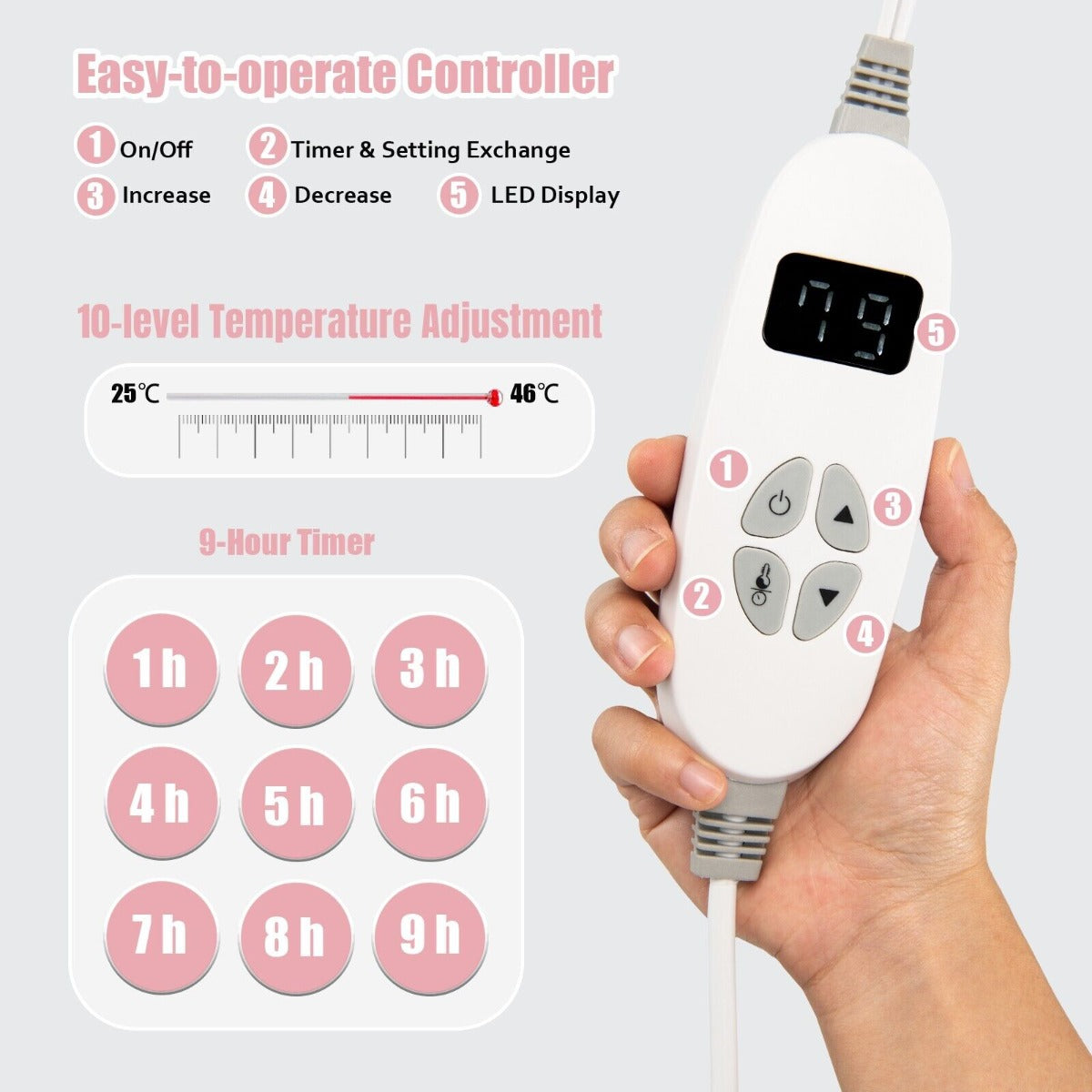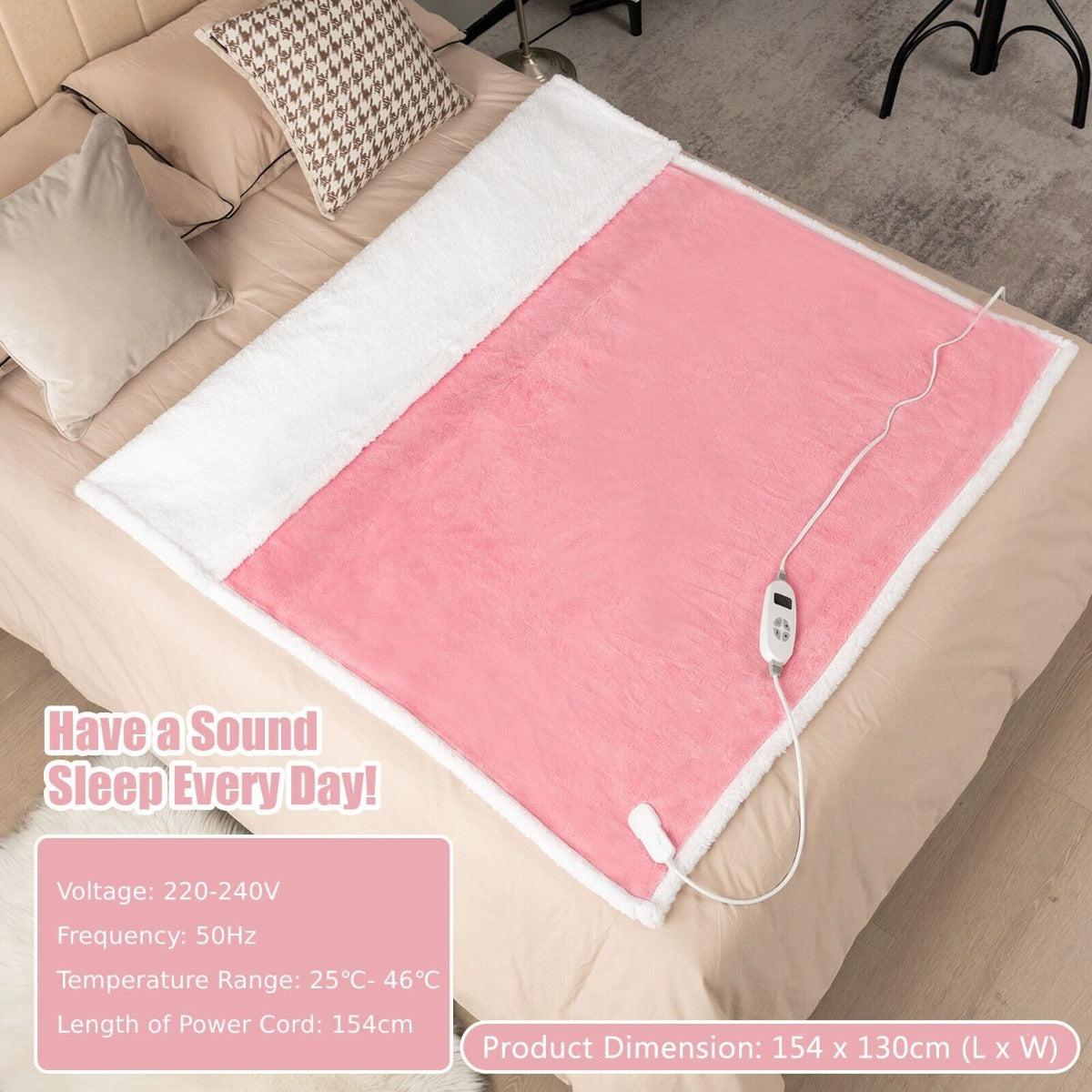 SKU: ES10212GB-PI || 154 x 130 CM Reversible Electric Heated Blanket with 10 Heat Settings-Pink