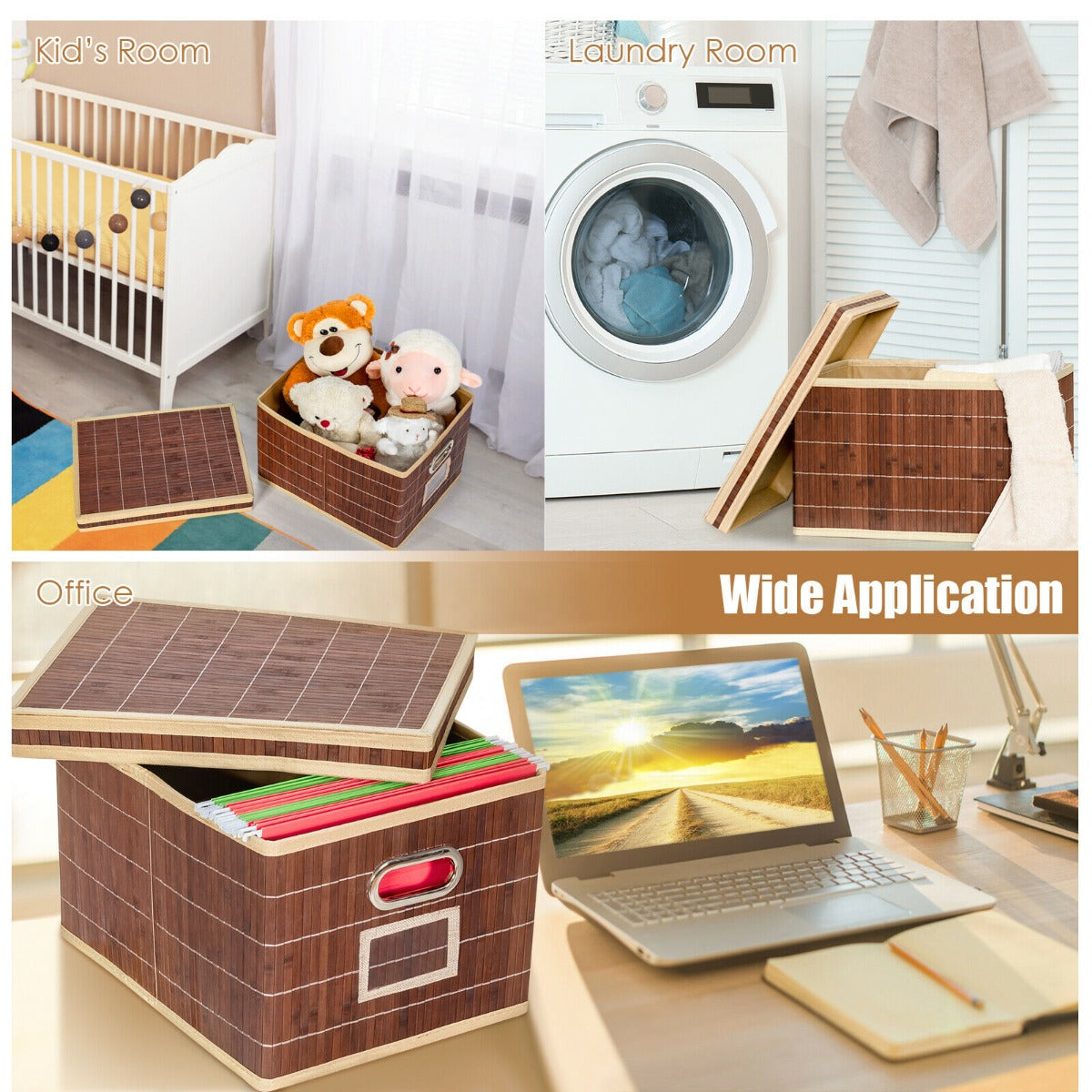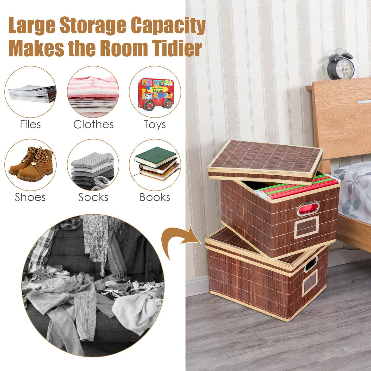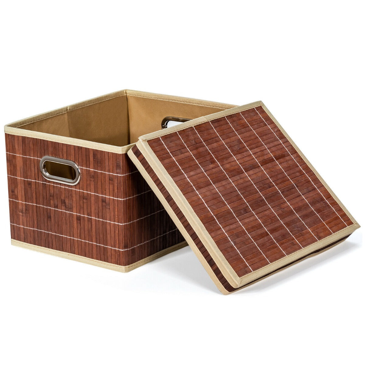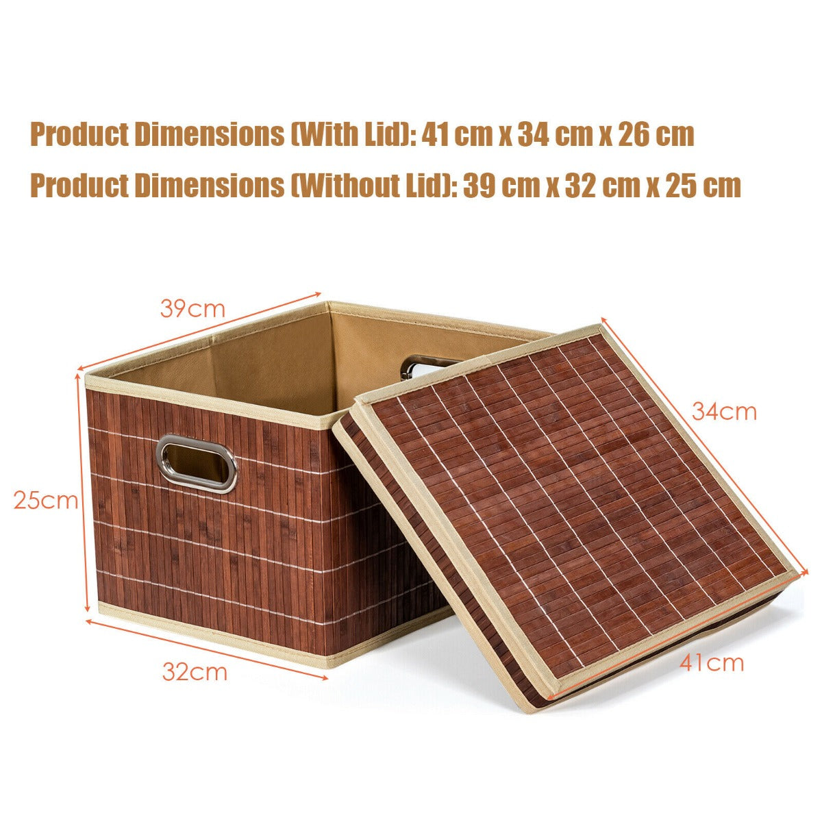 2 Pieces Bamboo Square Storage Basket Organizer with Lid-Coffee