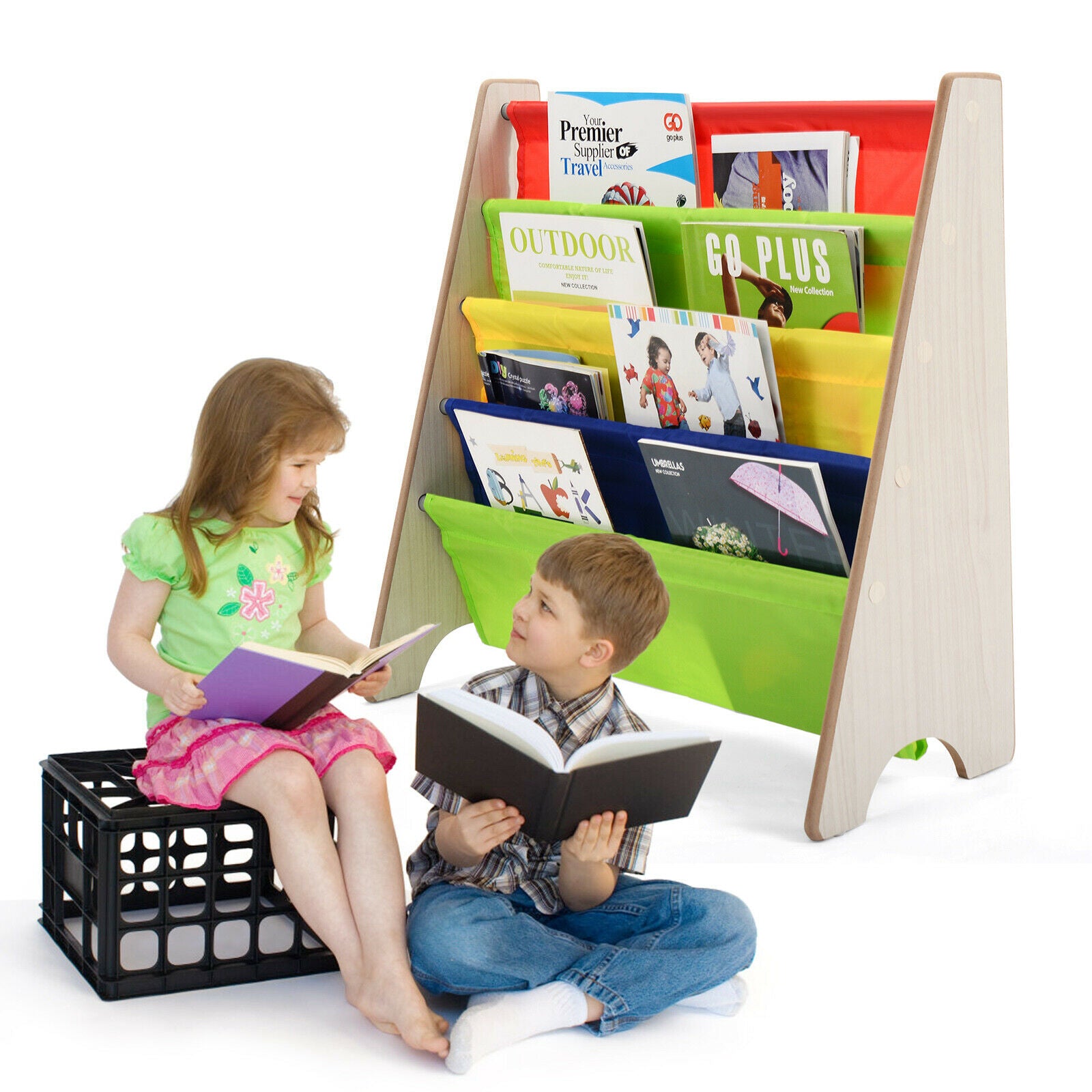 4 Tier Children Bookshelf Magazine Rack Organiser-Natural