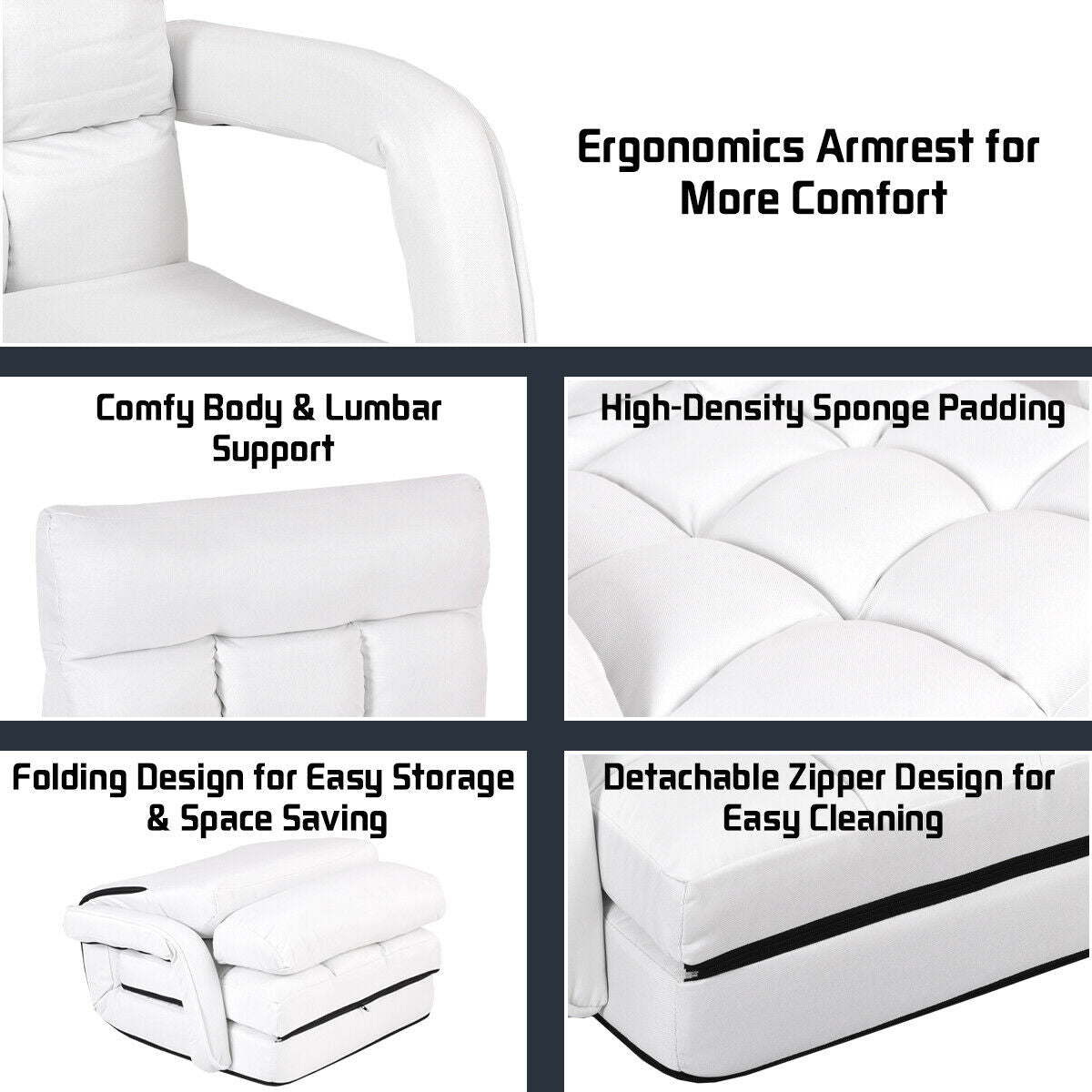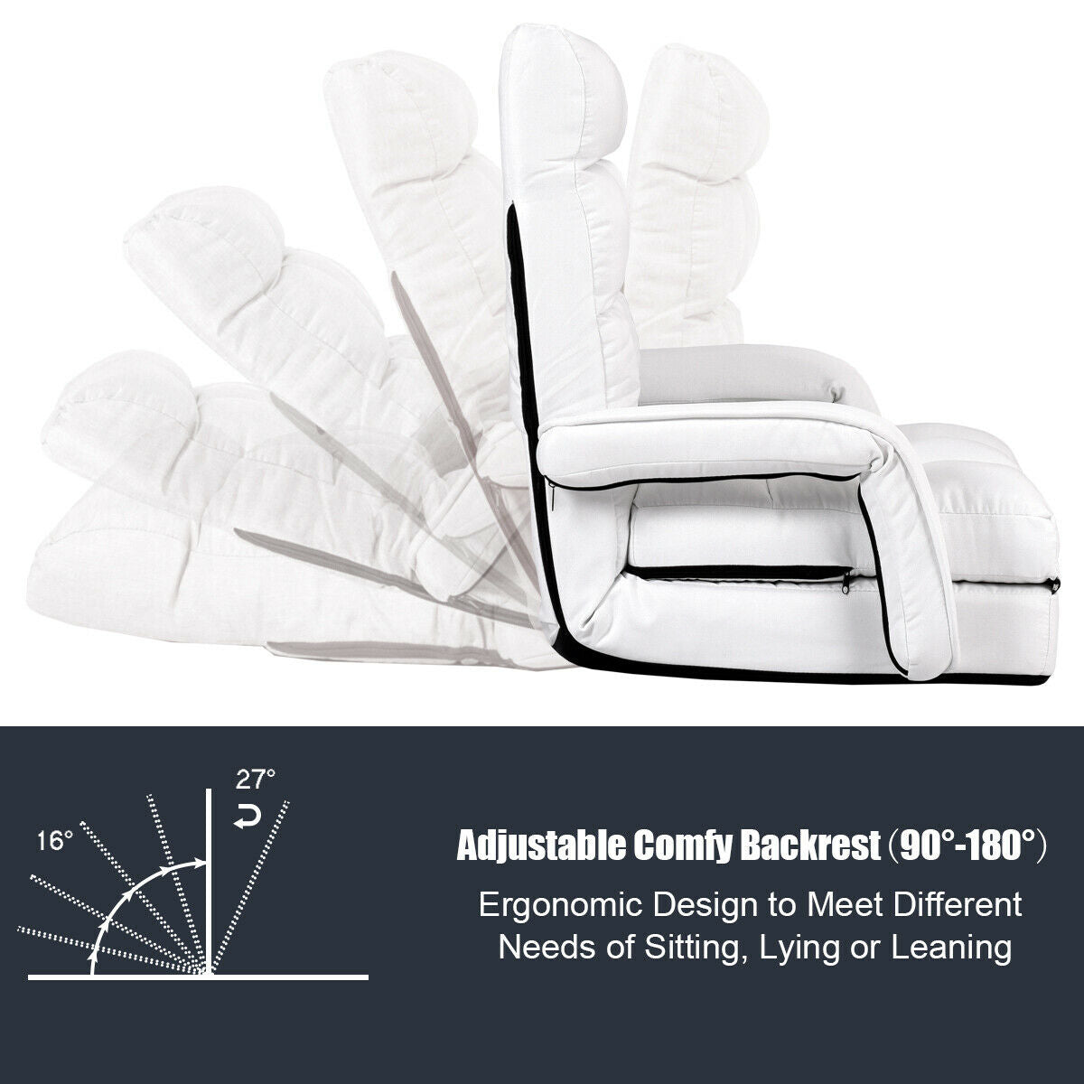 Adjustable Folding Floor Lazy Chair with Pillow-White