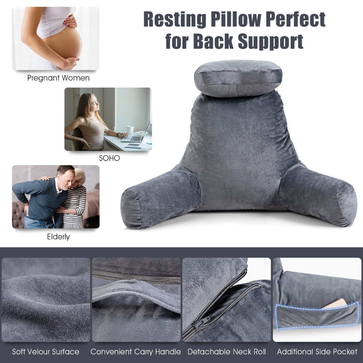Extra Large Bed Rest Reading Pillow with Detachable Neck Roll-Grey