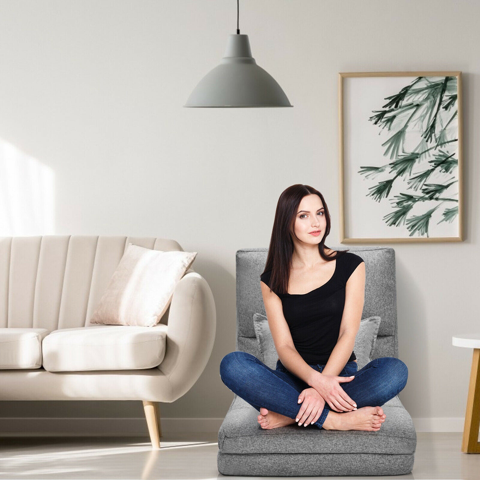 SKU: HW66919GR || Folding Lazy Floor Sofa Bed with Pillow-Grey