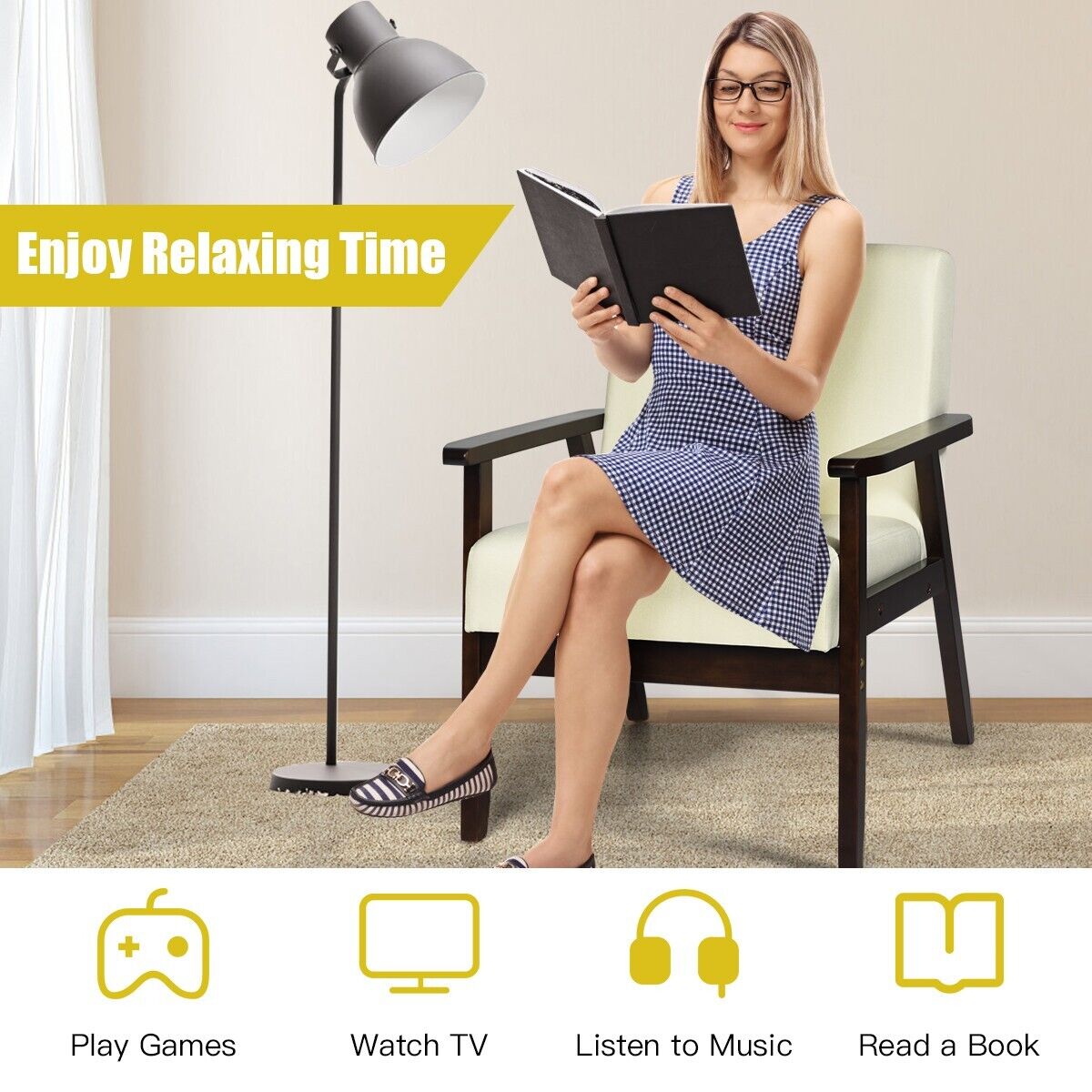 Modern Upholstered Linen Fabric Accent Sofa Chair with Wooden Armrest-Beige