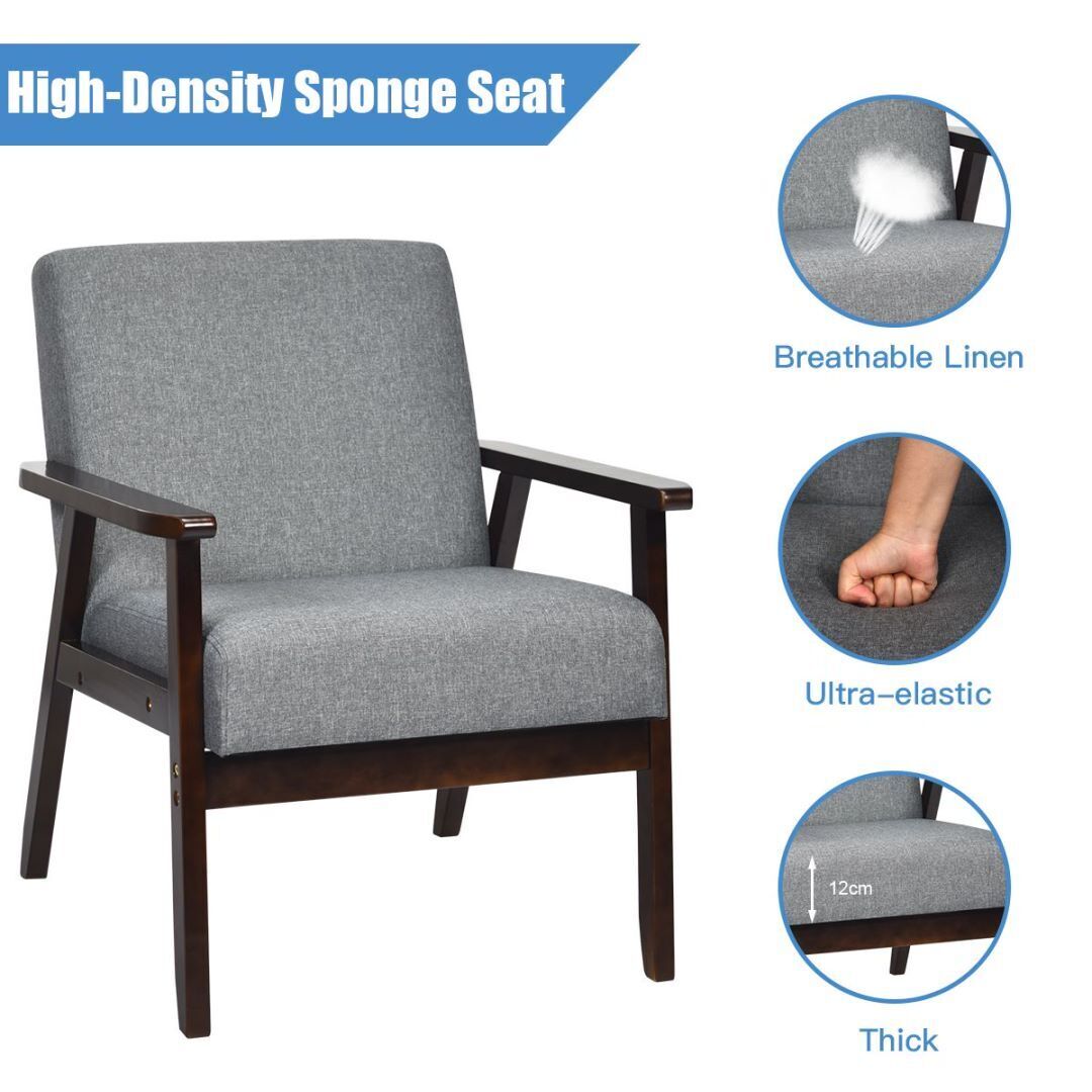 Modern Upholstered Linen Fabric Accent Sofa Chair with Wooden Armrest-Grey
