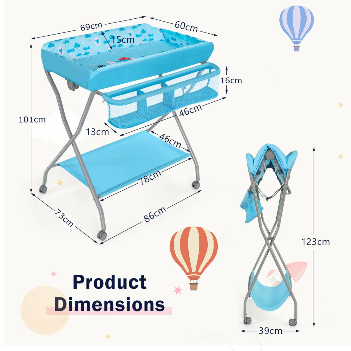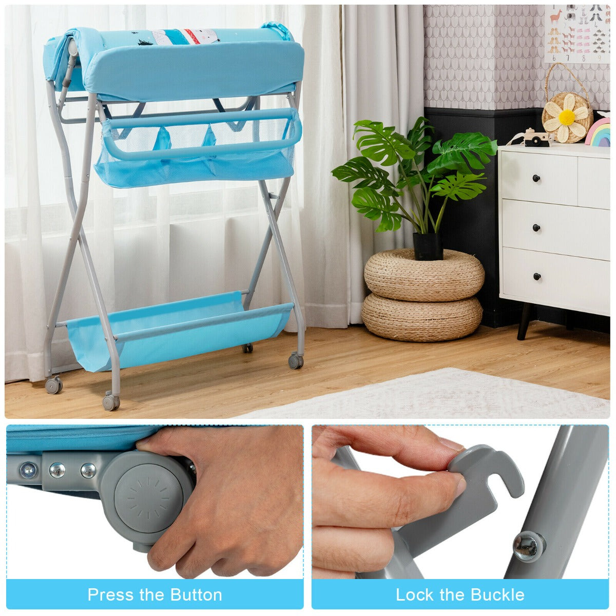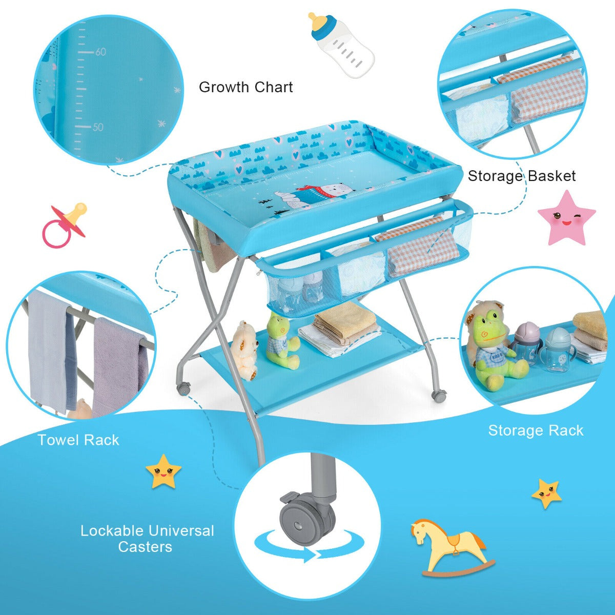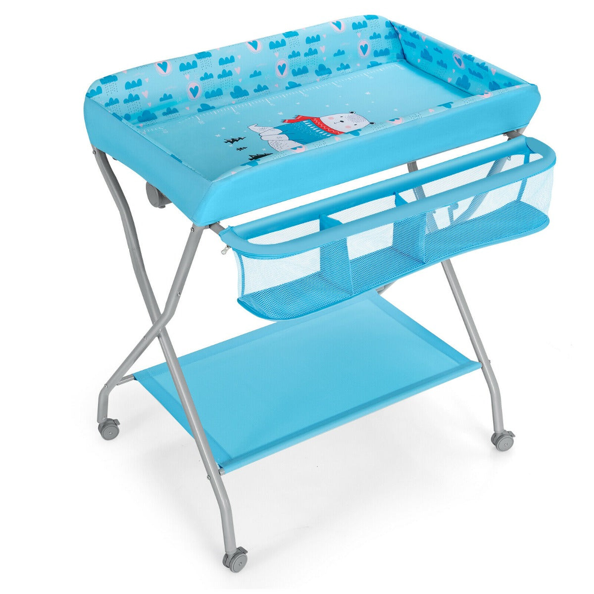 Rolling Baby Changing Table with Large Storage Basket-Blue