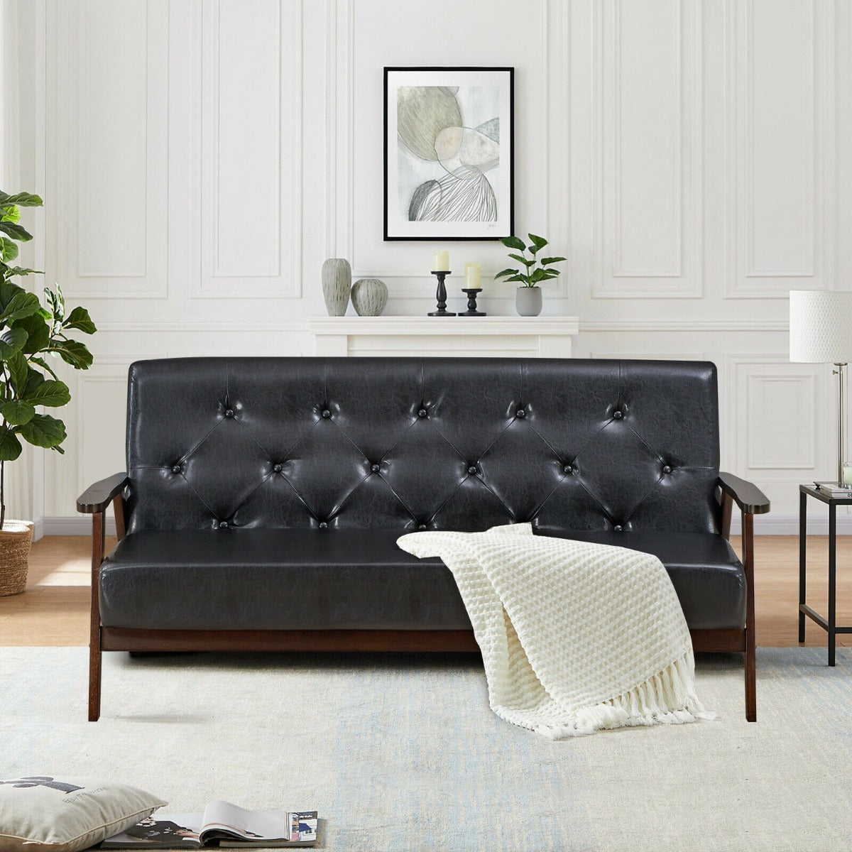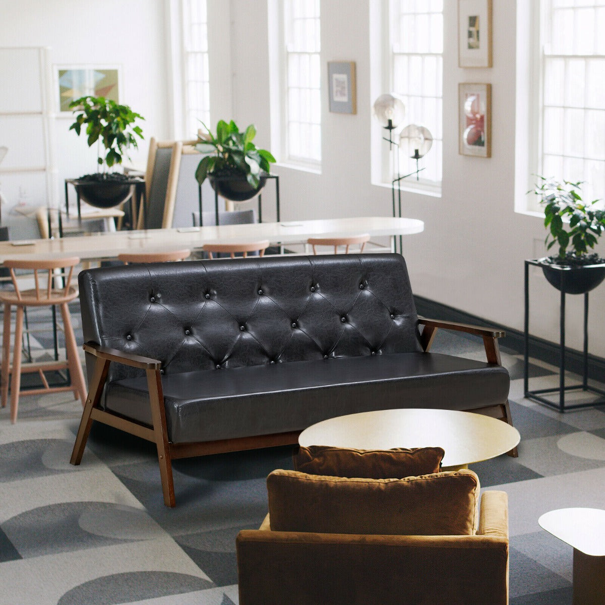 Rounded corners protect your delicate skin. You can freely read books, watch TV, play games or take a nap on the sofa. Don’t miss the single/3-seater accent PU leather sofa chair! ◠PU Leather and Comfortable Cushion: Covered by PU leather, the single sofa is breathable, waterproof and wear-resistant for years of use. Besides, the cushion is filled with 15cm thick high-density sponge, which is soft and high-elastic to offer you comfortable sitting experience when you sit or lean on the chair. ◠Ergonomic Backrest and Armrest: Comfortable backrest, large seat, rubber wood armrest and 100° backrest angle ensure an ergonomic structure. Thus, the accent chair can fit well with your spine curve and perfectly support your arms and legs. You won't feel uncomfortable after sitting on it for a long time. ◠Super Stable Construction: A-shaped frame and rubber wood legs keep it stable and sturdy, which is not easy to wobble or collapse. In addition, the leisure chair comes with reinforced design for additional stability. The single padded sofa chair can bear a weight up to 130kg/240kg. ◠Wide Range of Application: The guest couch with backrest button-tufted design and side screw hole decoration adds a touch of luxury and elegance to your home or office. You can use it as a sitting chair for business reception in your reception room or as a leisure sofa for relaxing in your living room. ◠Easy to Assemble and Maintain: By following the instruction with straight forward illustrations and descriptions, you can easily understand the assembly progress and install it in several minutes. With smooth and waterproof surface, you can easily and effortlessly clean it with a damp cloth.