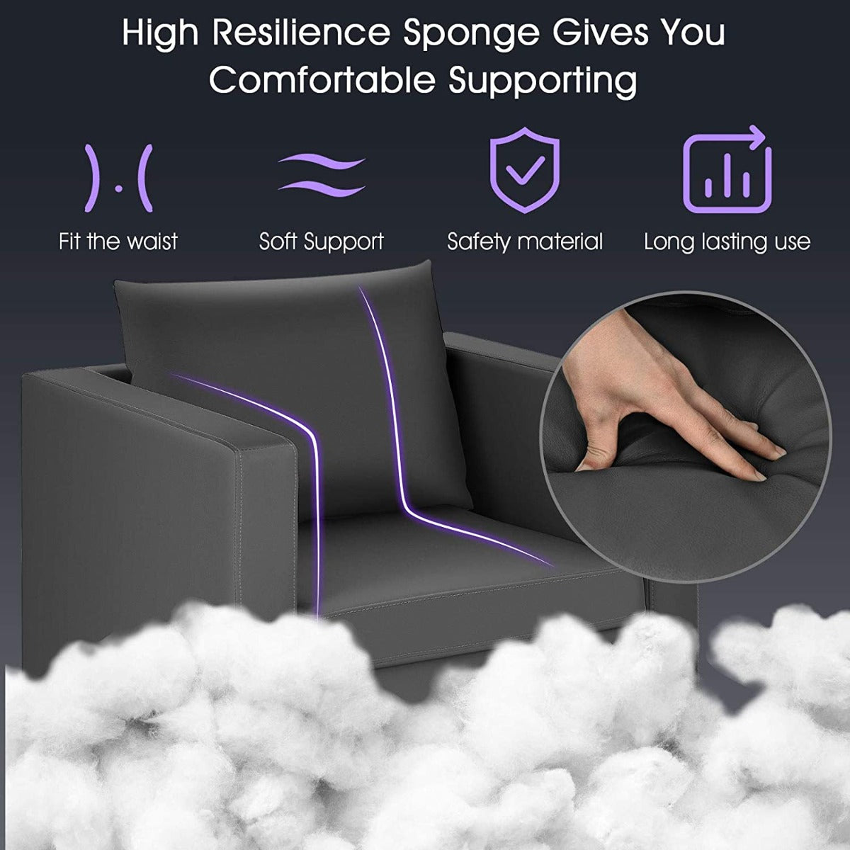 This tub chair has a thick cushion and matching pillow, offering a comfortable place to sit and relax. This tub chair provides a soft comfortable seat with PU leather accent covering high-density foam. Designed with a backrest to fit your back perfectly relieving spine pressure, the tub chair has high armrests for added comfort. The solid wooden frame offers a stable, durable chair with 4 metal legs with a weight capacity of 160kgs. The simple design of our single tub chair easily complements your home and/ or office. The chair is suitable for any room, such as the living room, bedroom, and reception room. If you're looking for such a product, do not hesitate to get it now! Perfect Modern Singe Sofa: Our single sofa is the perfect resting place for you to rest in home or office. The sofa comes in a stunning modern design, with straight lines and contemporary colour that accented with padded backrest. It allows you to add great decoration to your home without any hassle. Soft Cushion for Upgraded Comfort: Both 9cm thick cushion and smooth armrest featuring ultra comfort bring upgraded feeling to you whether you sit or lie in a relaxing position. Smooth PU leather with soft touching and good tactility will offer your family comfortable sitting experience. Sturdy and Durable Frame: Constructed with hardwood frame, the single sofa is durable to provide long term service time. It is sturdy enough to withstand a maximum weight capacity of 160 kg. Coming with high quality metal legs, it will support you firmly and ensure superior steadiness. Ideal Furniture for Home or Office: The sofa is perfect for living room, bedroom, cloakroom, etc. With the simple and modern design, it can perfectly match any scheme or tone style, suitable for most rooms in your house. It can not only integrate into different home decoration styles, but also exist in the company's lounges and meeting rooms. Easy Clean and Floor Protection: Enjoying with soft PU leather and smooth zipper, the single sofa is easy to clean with damp cloth. Moreover, equipped with footpads, our leisure sofa will keep in good balance during use and protect your floor from scratching.