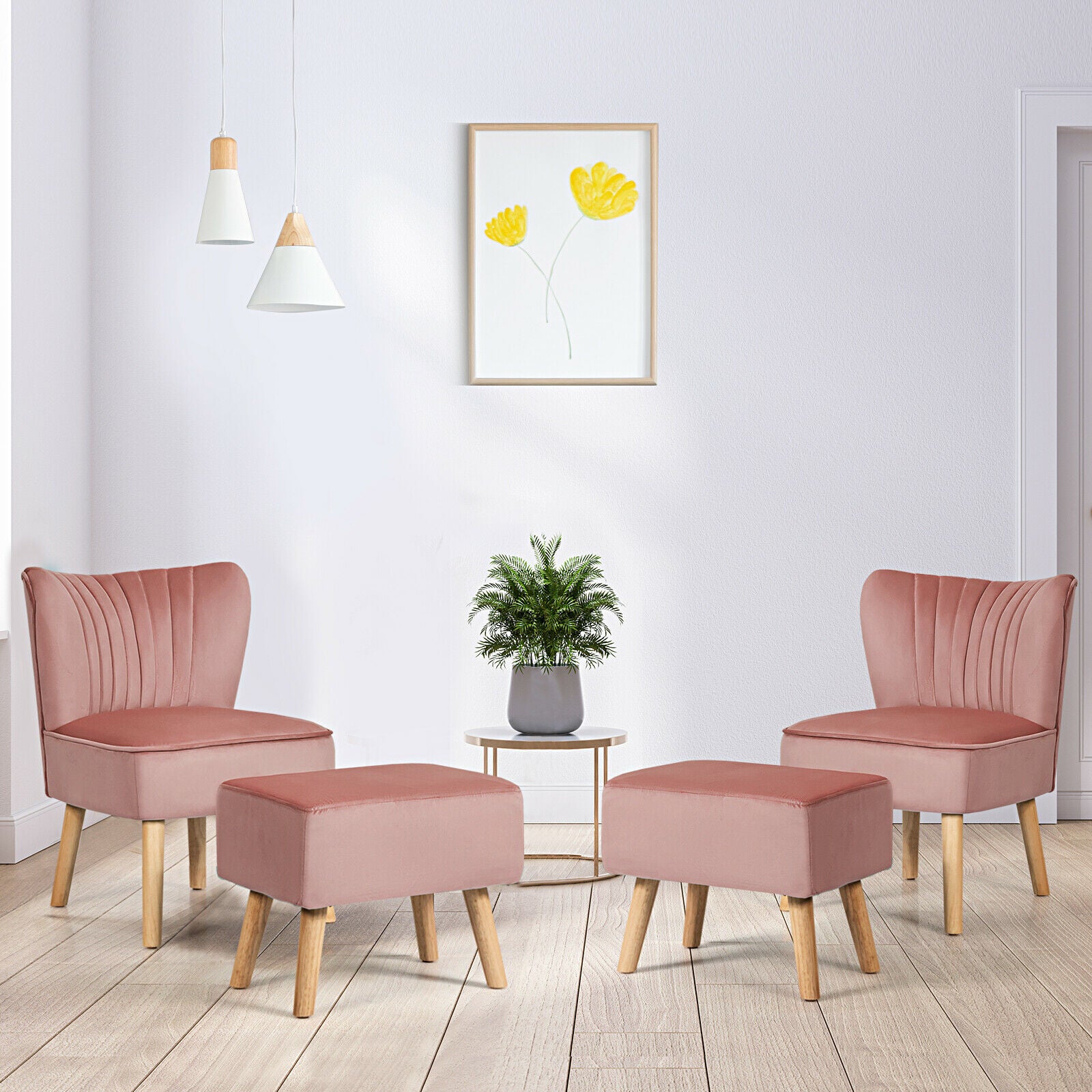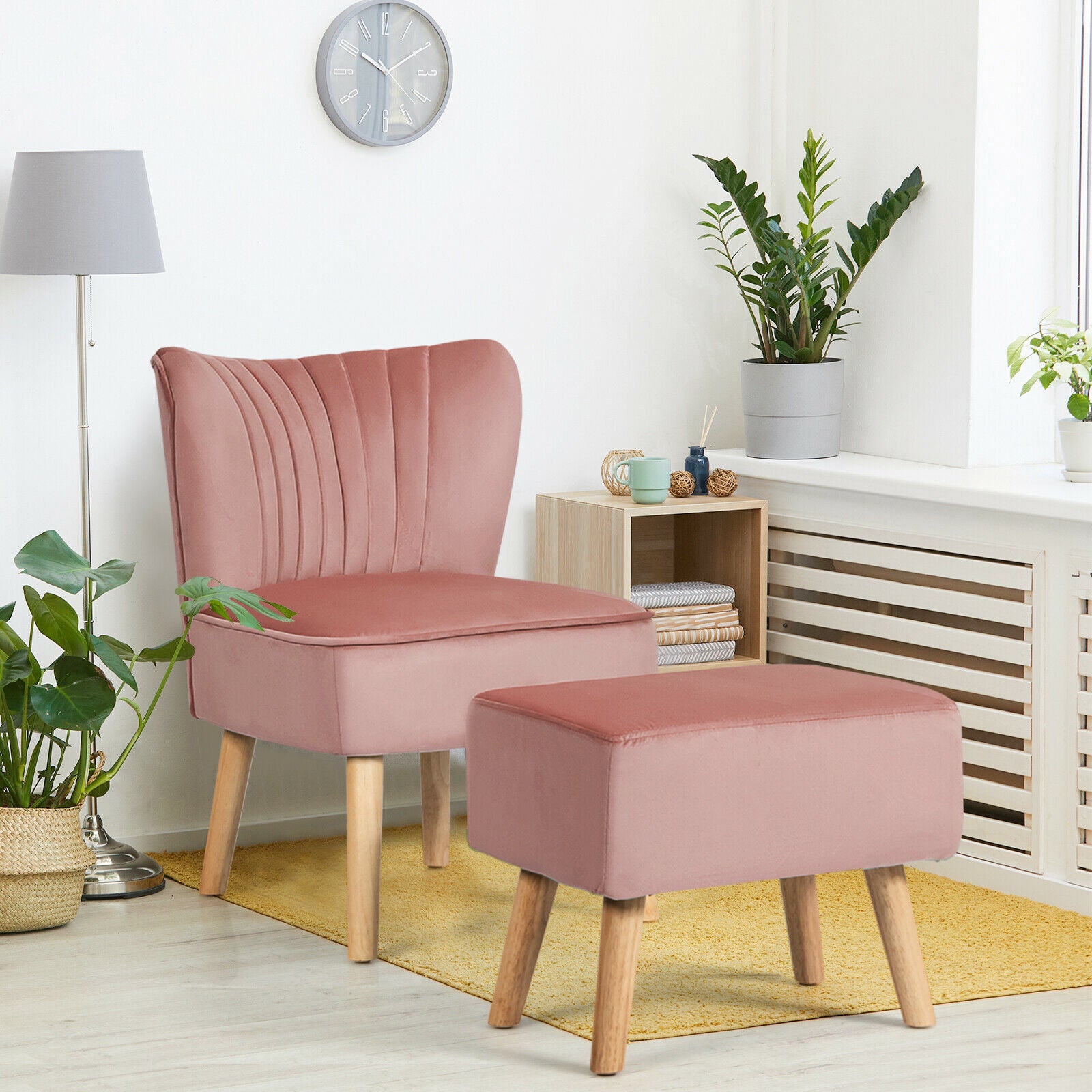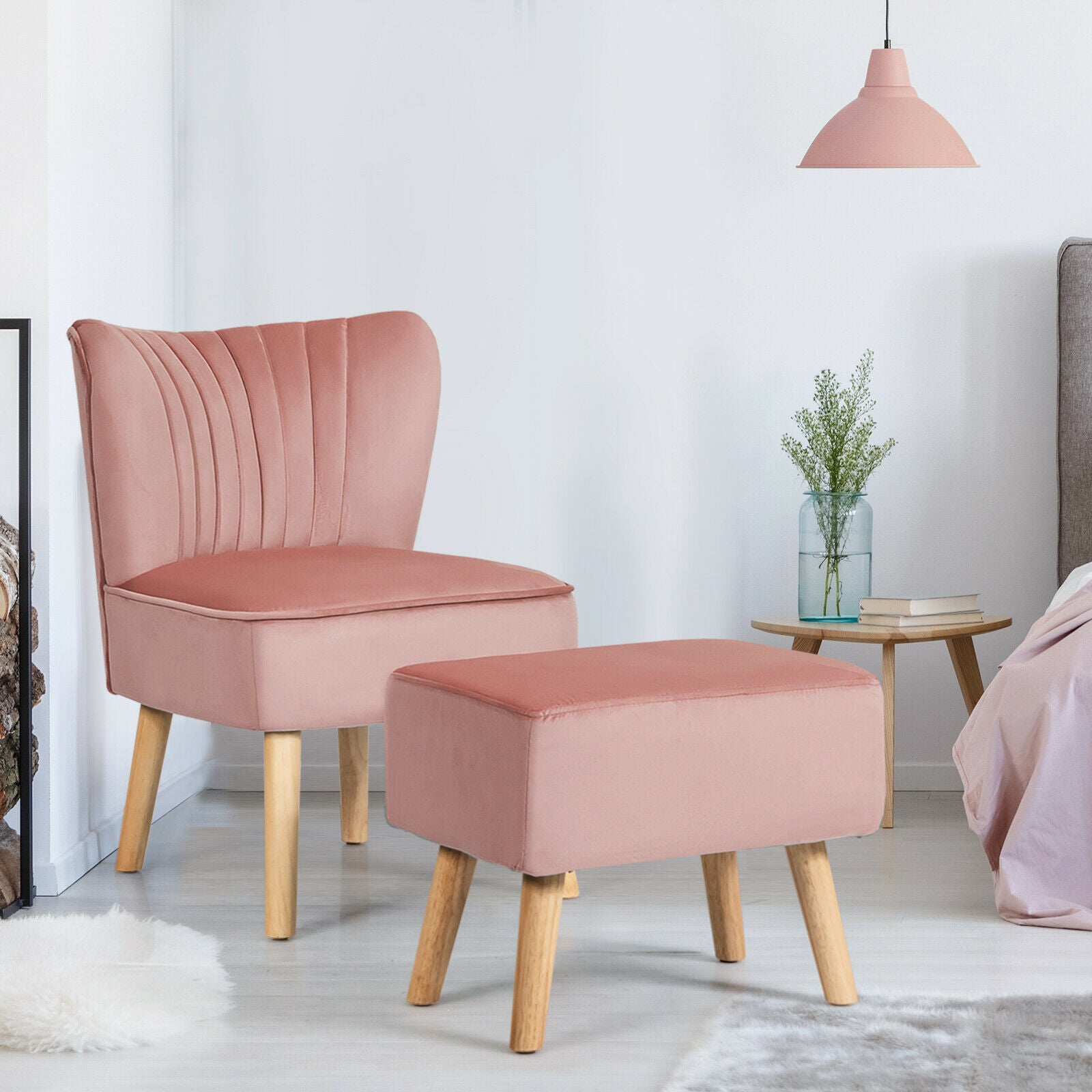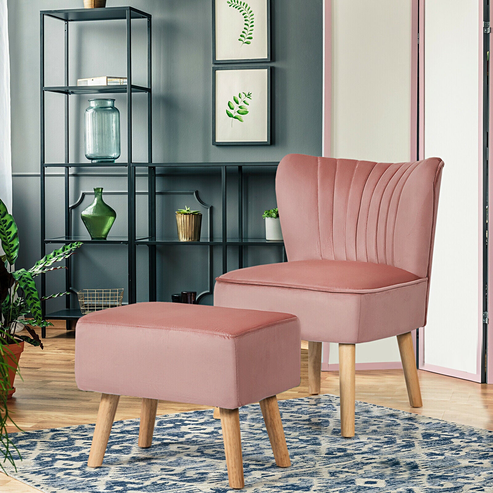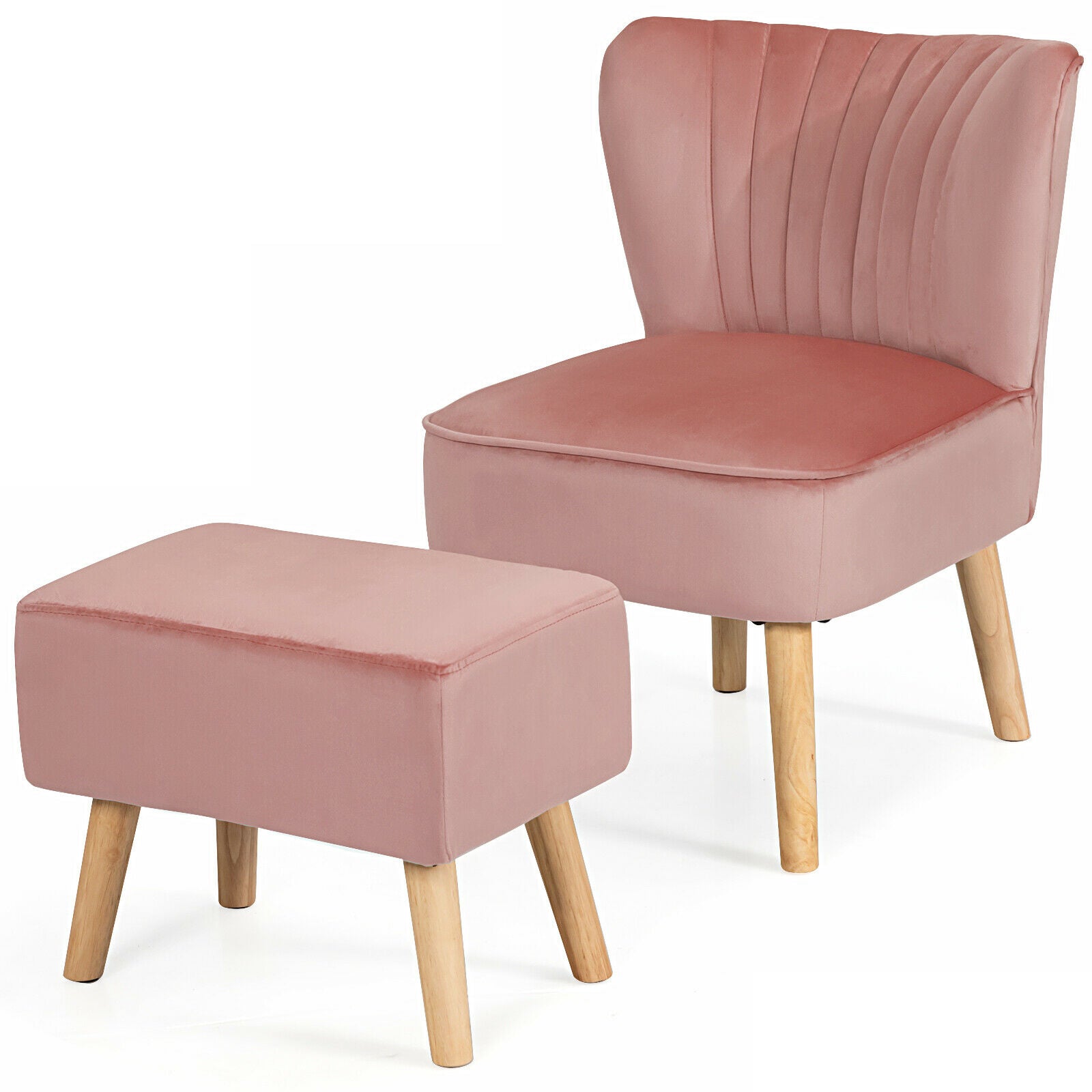 Soft Velvet Accent Chair with Oyster Shaped Back and Ottoman-Pink