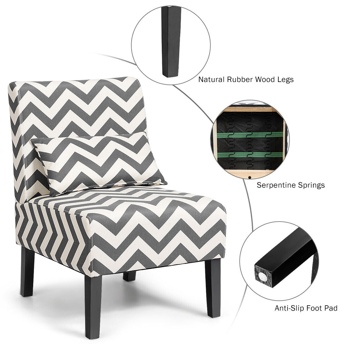 Upholstered Linen Fabric Armless Accent Chair with Pillow for Home Office-Grey